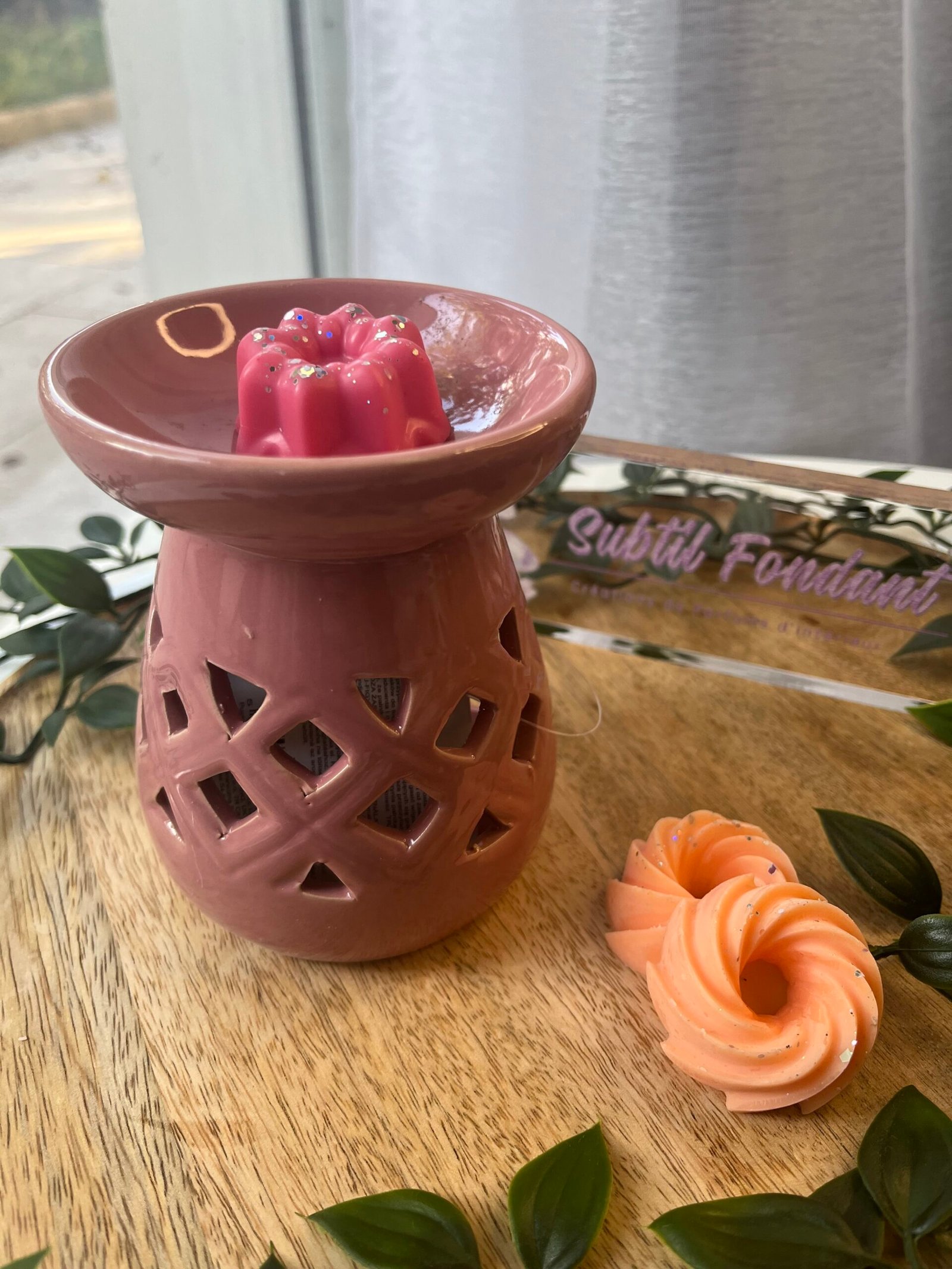 - Facilité d’Utilisation : Il suffit de mettre votre fondant parfumé dans le récipient du dessus et une bougie chauffe plat (non incluse) dessous. En quelques minutes, votre espace sera embaumé d’une fragrance envoûtante.