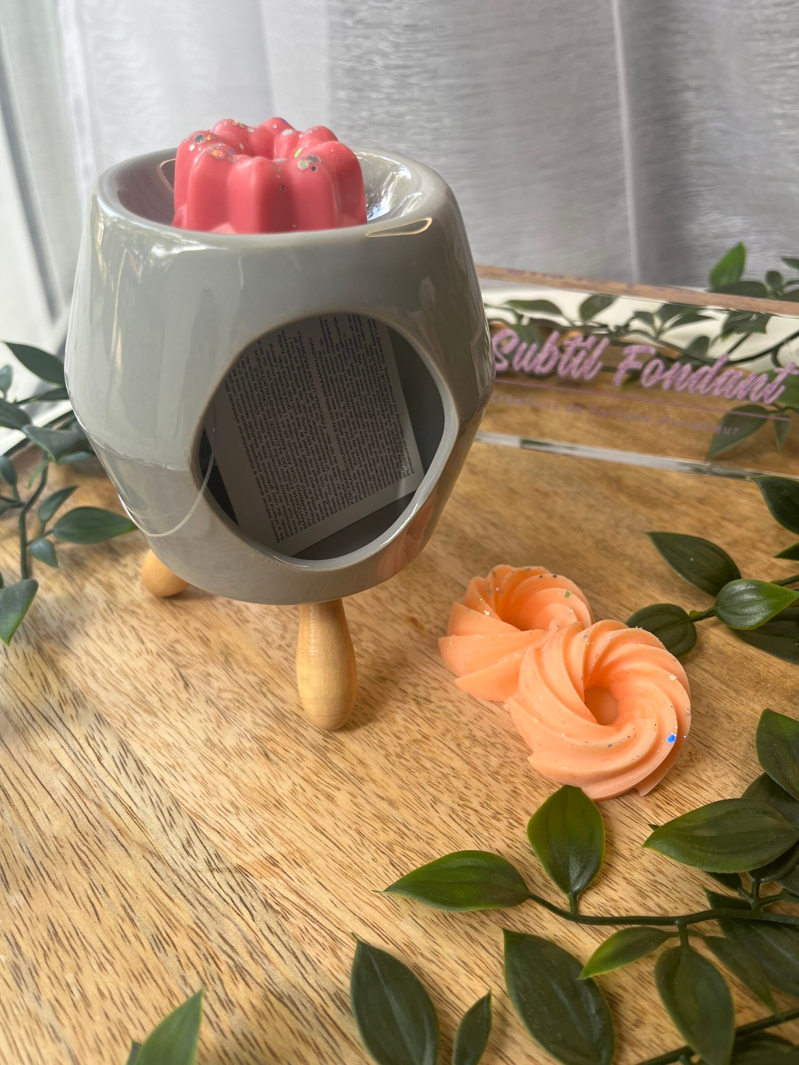 Découvrez notre diffuseur de fondant parfumé, une pièce maîtresse qui allie élégance et fonctionnalité. Disponible en trois coloris modernes — blanc, noir et gris — ce diffuseur se distingue par son design chic et son pied en bois façon naturelle, apportant une touche chaleureuse à votre décoration intérieure.