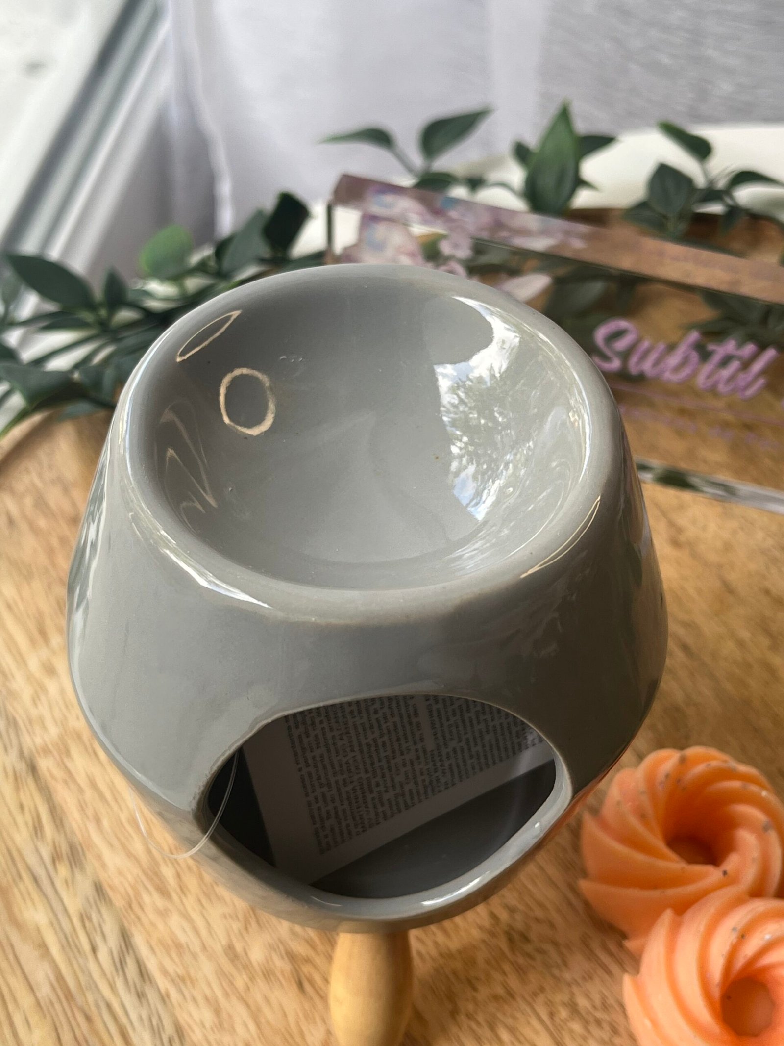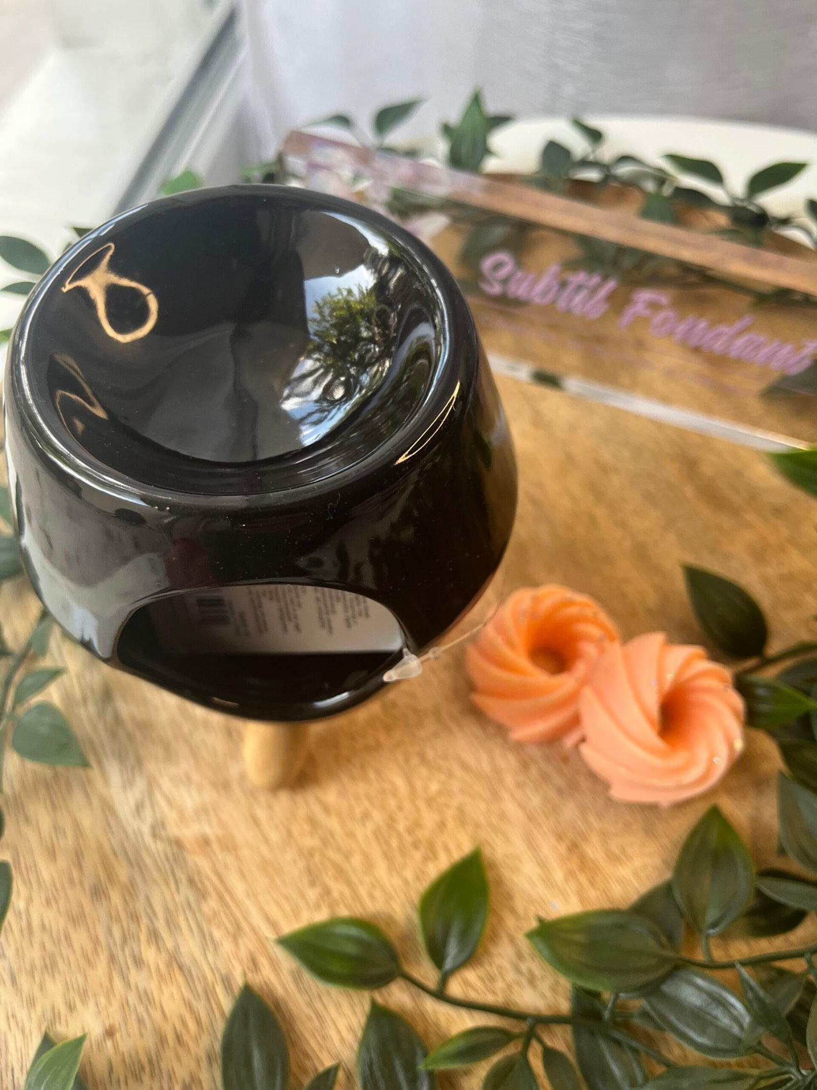 Diffuseur de Fondant Parfumé – Blanc, Noir et Gris avec Pied en Bois